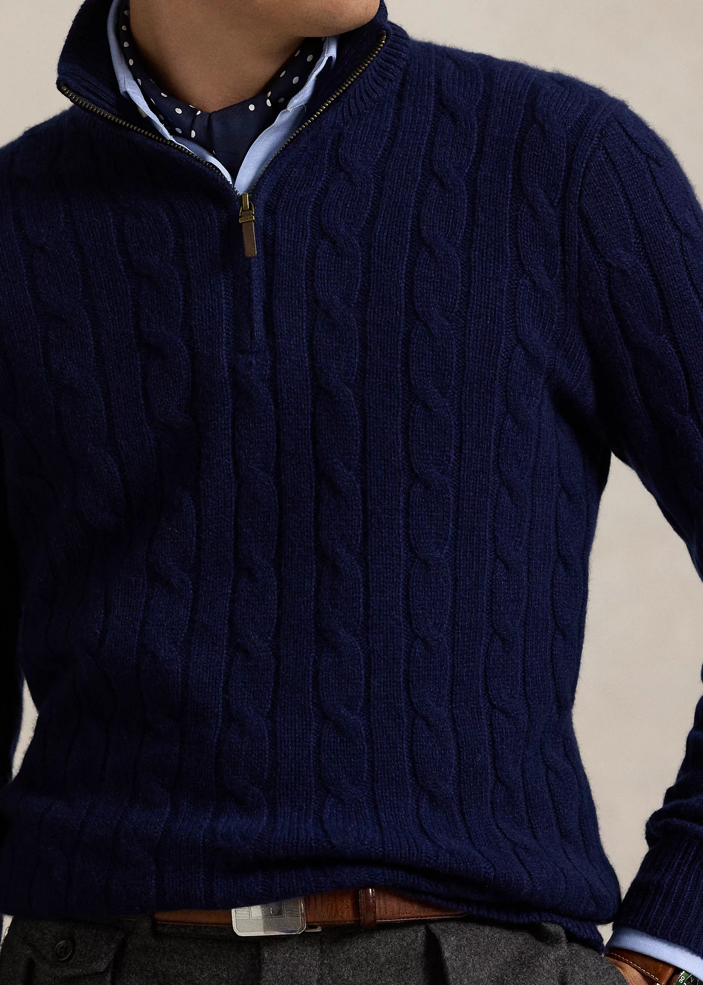 Cable-Knit Cashmere Quarter-Zip Sweater