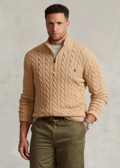- Rib-knit mockneck. Quarter-zip placket with a suede zipper pull.