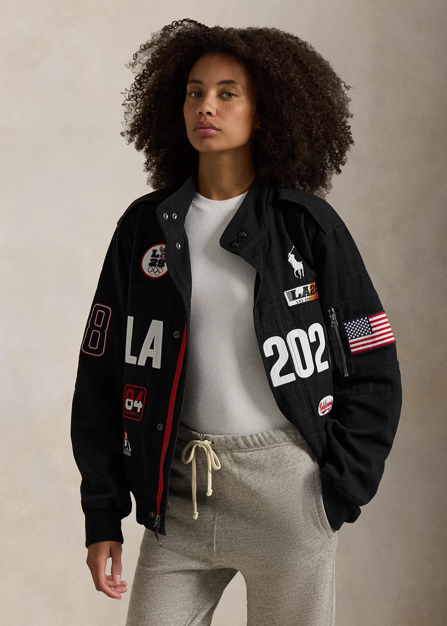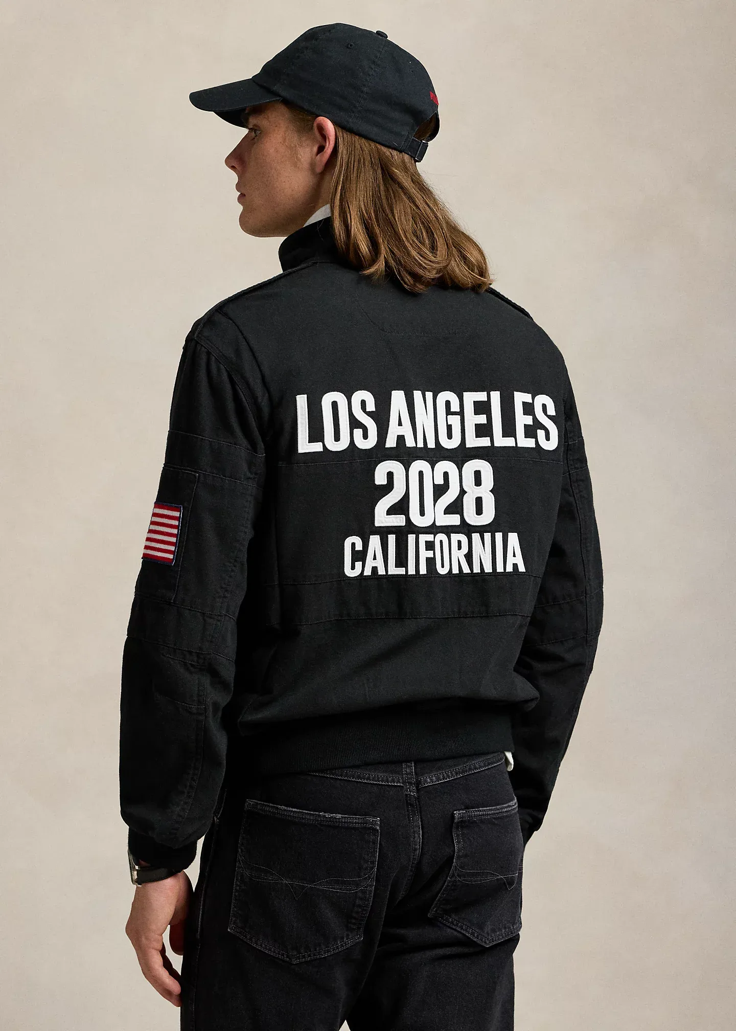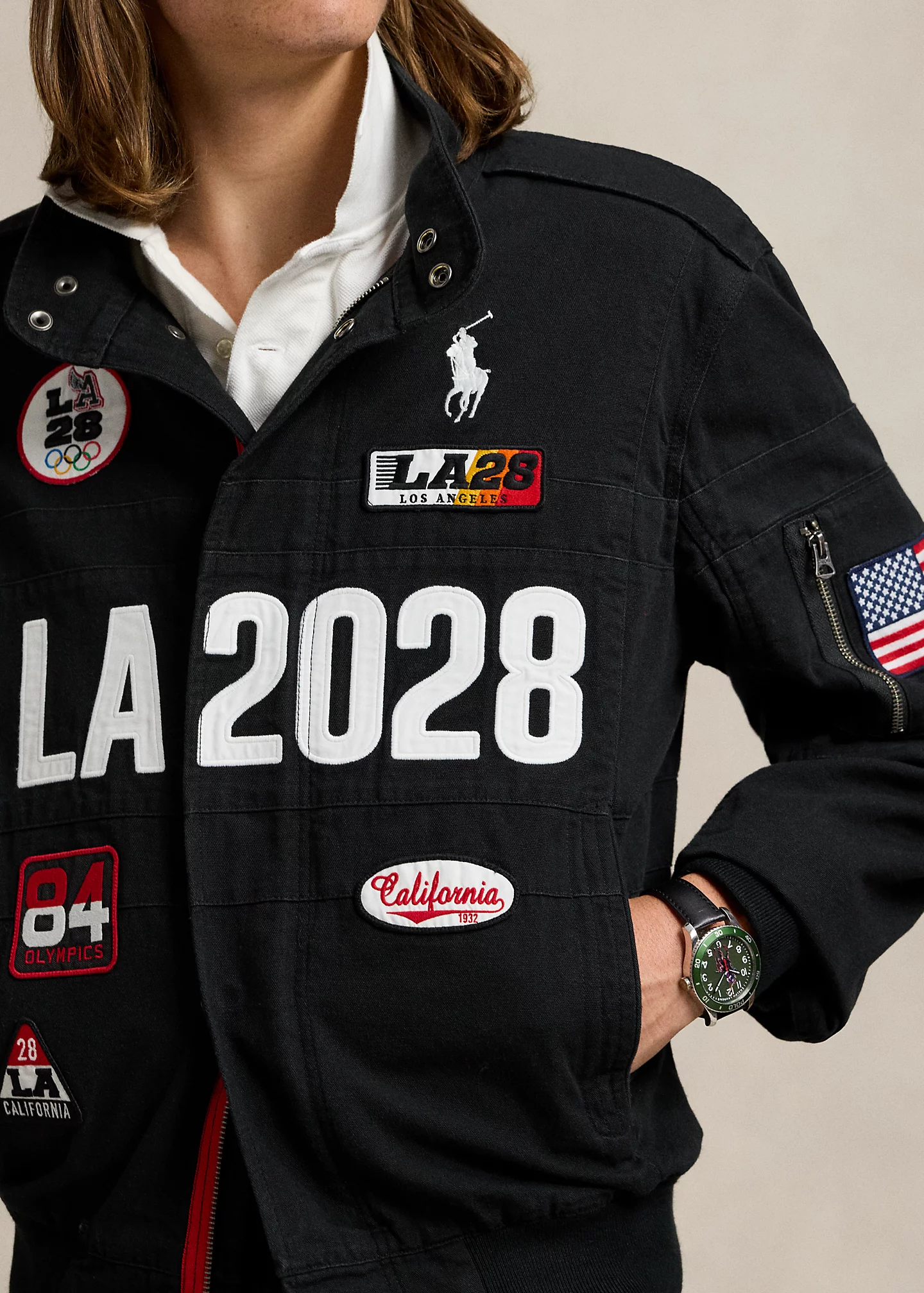 - Official Games logo patch that includes 鈥淟A28鈥?and the Olympic Rings at the right chest. 鈥淟A28 Los Angeles鈥?patch at the left chest. 鈥淟A 2028鈥?patches at the center front. 鈥淐alifornia 1932鈥?patch at the left waist. 鈥?4 Olympics鈥?patch at the right waist.