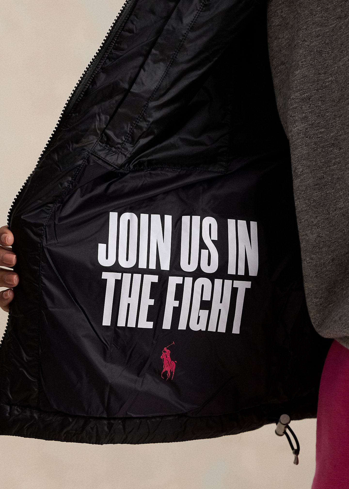 - Signature embroidered Pony at the left chest. 鈥淛oin Us In The Fight鈥?and our signature Pony rubber-printed at the interior right panel.