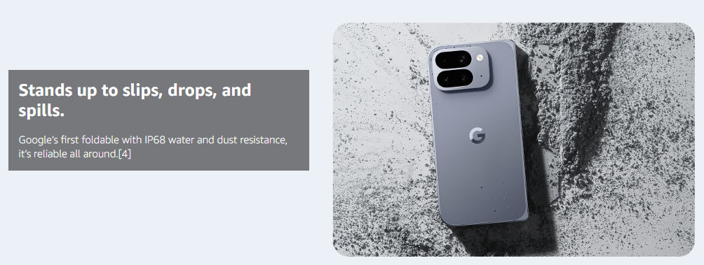 - The gearless, high-strength hinge makes it durable enough to handle about 10 years of folding[3]; plus, Pixel 10 Pro Fold is built with Corning Gorilla Glass Victus 2 and has an IP68 rating for water and dust resistance[4]