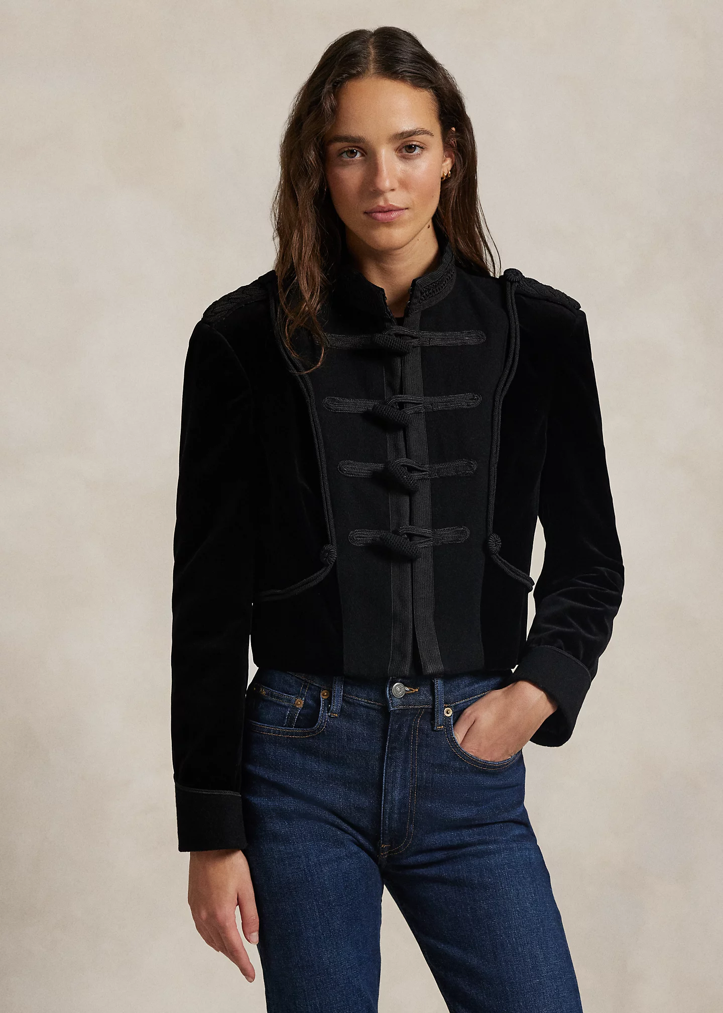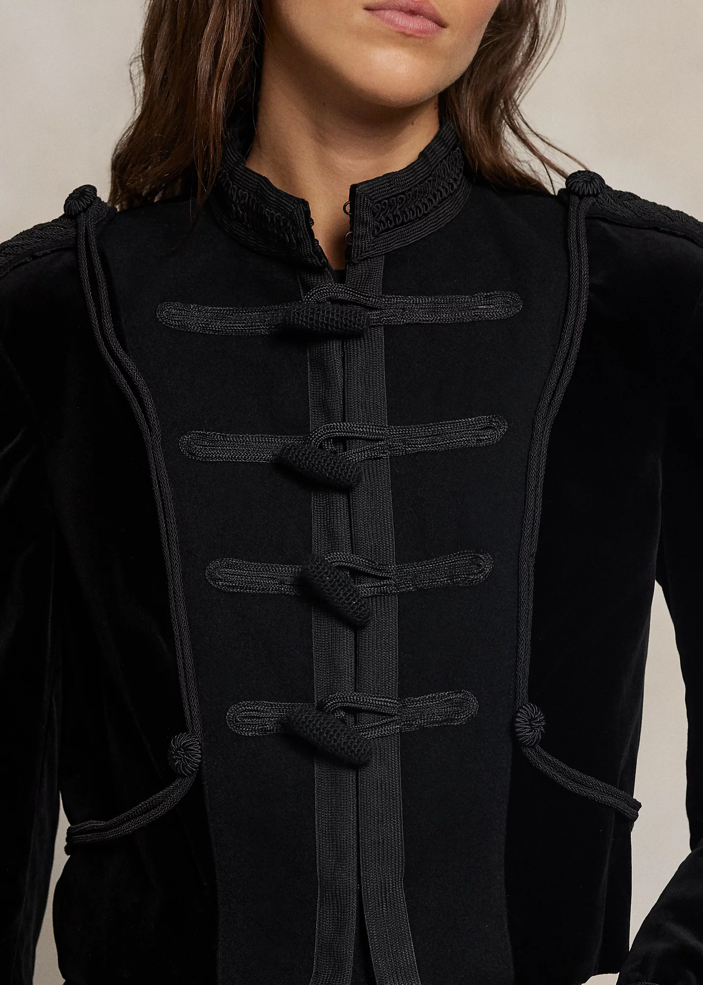 Velvet Soutache-Trim Toggle Jacket